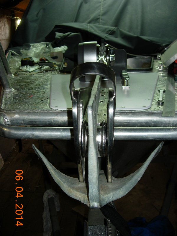 Спасибо Сергей за фото! Я Ваши фото видел, тоже хотел так сделать. Мало того: два года назад купил лебёдку Lewmar, роульс, якорь и 15 метров цепи :). Но, как-то до установки дело так и не дошло, так в гараже всё и лежит. Всё-таки решил сделать скрытую установку... Ещё не хотелось сверлить новые дырки в палубе, у меня уже были четыре дырки от битенга, который я в 2018 году прикрутил: Ссылка.