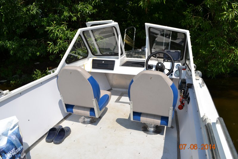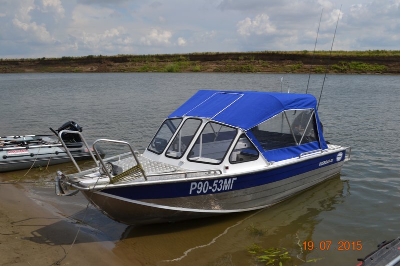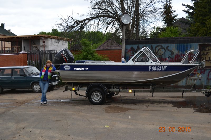 Владею Русботом 47 более 10 лет, отличная лодка для рыбалки и отдыха, сначала стояла Ямаха 60 2т, маловато и скучно, поставил 90 Яму 4т, вот тогда она себя и проявила, ходил на винте по Енисею за 200 км потом ставили водометную насадку и в самые ебе-ня по боковой речке за хариусом и ленком. Лодку после покупки естественно готовил под себя, это установка носовых и кормовых рейлингов, установка дополнительных блоков плавучести( Яма 90 весит нехило) задняя лесенка была, переднею изготовлял сам, стекла установил триплекс с стеклоочистителем, справа электро, слева у штурмана ручной привод, убрал передний носовой рундук уж больно он паршиво смотрелся, поставил нормальные съемные сидушки, откидной столик, в носу электролебедка и обогреватель Плонар , дополнительный аккумулятор, 2 спальных места из раскладушек, днище лодки подшил сендвичем из 4 мм стеклопластика и 10 мм ПНД, ходовой тент был с завода, транспортировочный шил в мастерской.